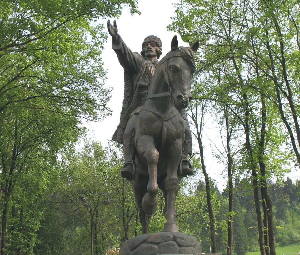 Ideea cinstirii memoriei lui Avram Iancu, prin ridicarea unui monument, a devenit posibilă abia după 1 Decembrie 1918, iar istoricul acestei statui, este la fel de „zbuciumat” ca și cel al „Craiului Munților Apuseni”. Statuia ecvestră a fost ridicată mai întâi la Târgu Mureș, sarcină încredințată comitetului de inițiativă, avându-l în frunte pe primarul Emil Dandea, și încredințată pentru a fi sculptată lui I.D. Dimitriu Bârlad. A fost terminată în primele luni ale anului 1927, iar la 10 mai 1930 a fost inaugurată în fața unei mari mulțimi de oameni veniți din toată țara. În luna septembrie 1940, prefectul județului Turda, Emil Crișan, împreună cu avocat dr. Motora din Cîmpeni au făcut demersurile necesare pentru a obține de la Primăria Târgu Mureș statuia, care a fost apoi adusă la Cîmpeni, în toamna aceluiași an, unde a fost așezată pe un soclu de piatră pregătit din timp. Nicăieri amintirea lui Avram Iancu, Horea, Cloșca și Crișan nu este mai vie, mai puternică decât în Ţara Moților, țară de piatră și zbucium.